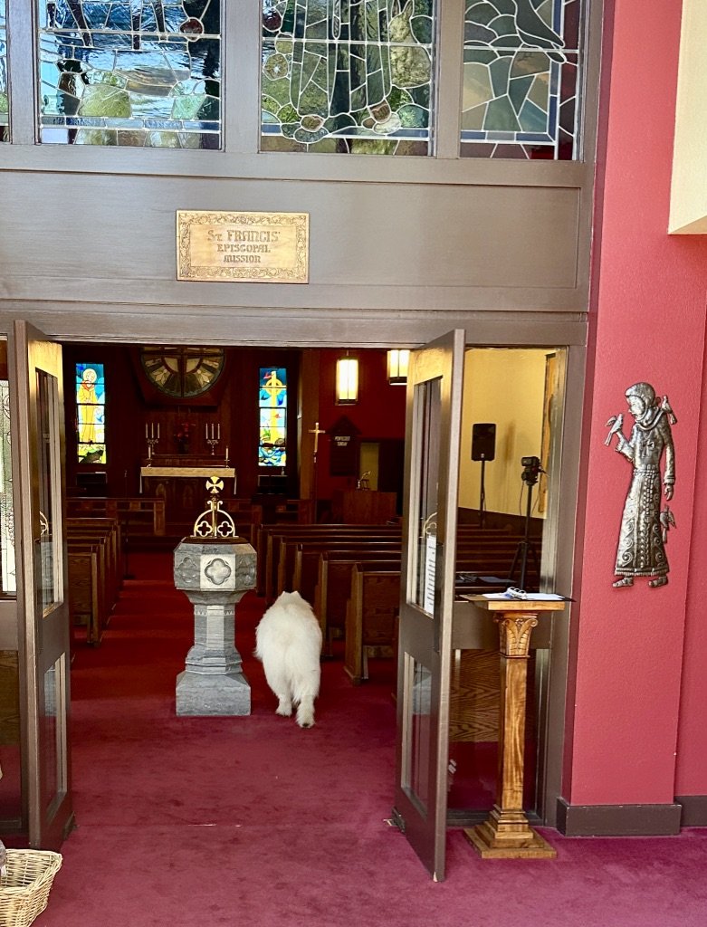 Loki at his home parish of St. Francis Episcopal in Novato, CA!